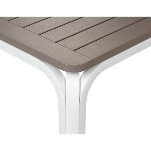 Elegant table with slatted DurelTop tabletop and powder-coated aluminium legs. Extendable top from 140 cm to 210 cm. Easily assembled and disassembled.